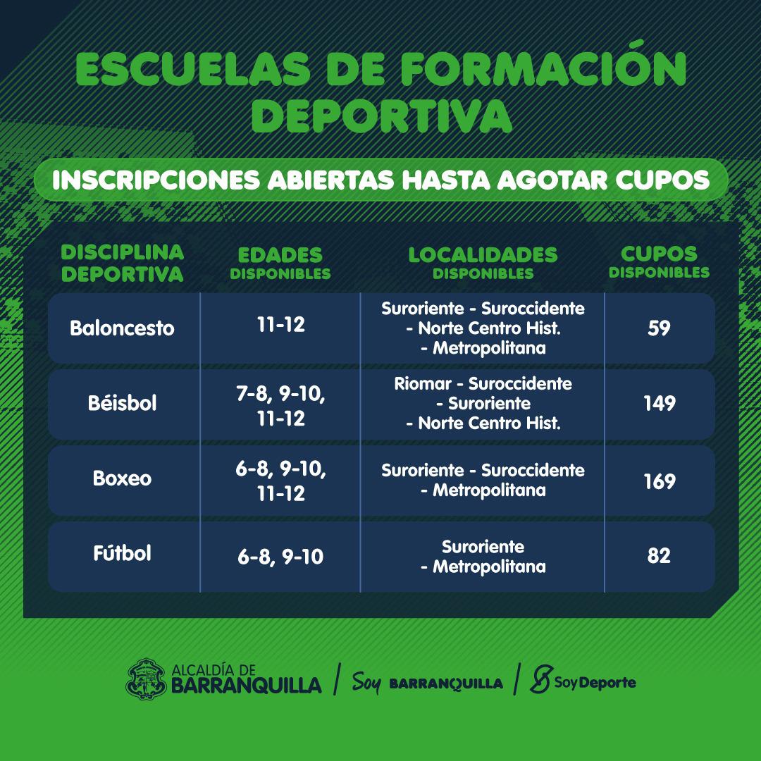 La reactivación del deporte en Barranquilla continúa y por ello la Alcaldía sigue brindando numerosas actividades para sus ciudadanos. Llegó el turno de los jóvenes, pues se habilitaron miles de cupos, en diferentes disciplinas, para que los más pequeños puedan inscribirse.